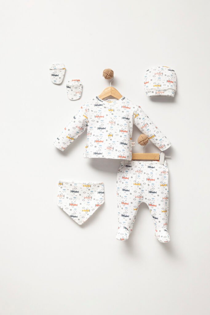 %100 Pamuklu Uçaklı Hastane Çıkışı Seti