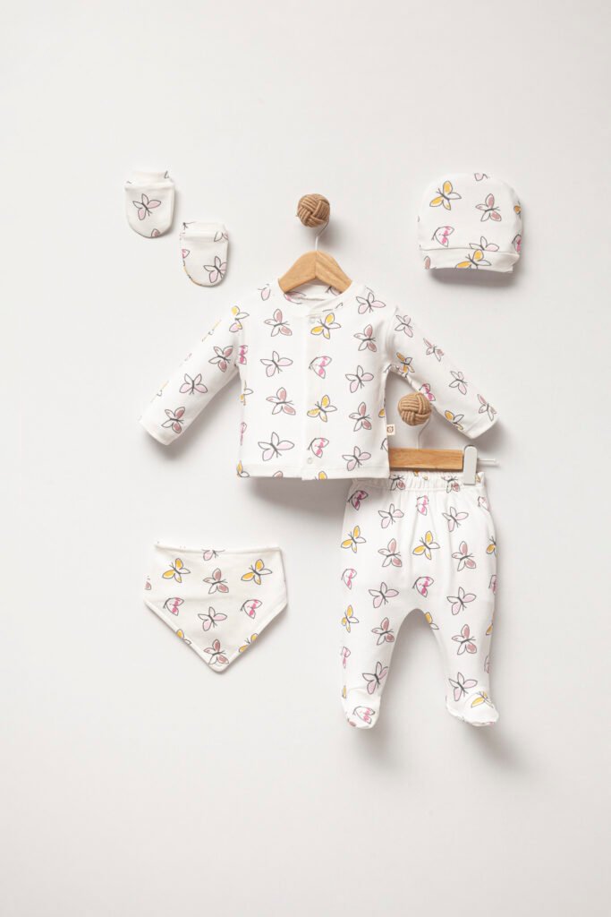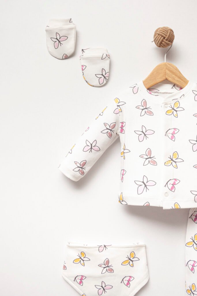 %100 Pamuklu Kelebekli Hastane Çıkışı Seti