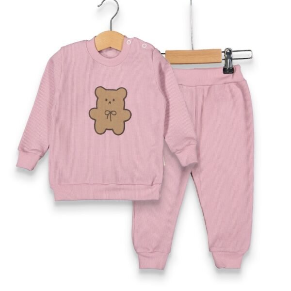 %100 Pamuklu Yavru Ayı Desenli Waffle İkili Takım