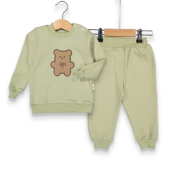 %100 Pamuklu Yavru Ayı Desenli Waffle İkili Takım